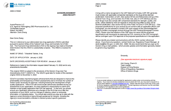 3月16日,古天乐代言太阳集团138发布公告,公司化药仿制药枸橼酸托法替布片(规格:5mg)获得美国食品药物管理局(以下简称“FDA”)下发的《受理通知书》,待取得FDA注册批件或上市许可批件后可进行销售。