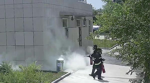 演练模拟了乙醇罐区在槽车卸醇时发生泄漏引发火灾事故,现场员工第一时间开展应急响应和初期处置,车间主任接报后立即报告公司应急救援指挥部总指挥。总指挥按照既定方案,疏散现场无关人员,使用室外消防水冷却泵房,沙土围截泄漏物,泡沫灭火装置和灭火器灭火,组织公司应急救援队伍开展处置,最终将火扑灭。
