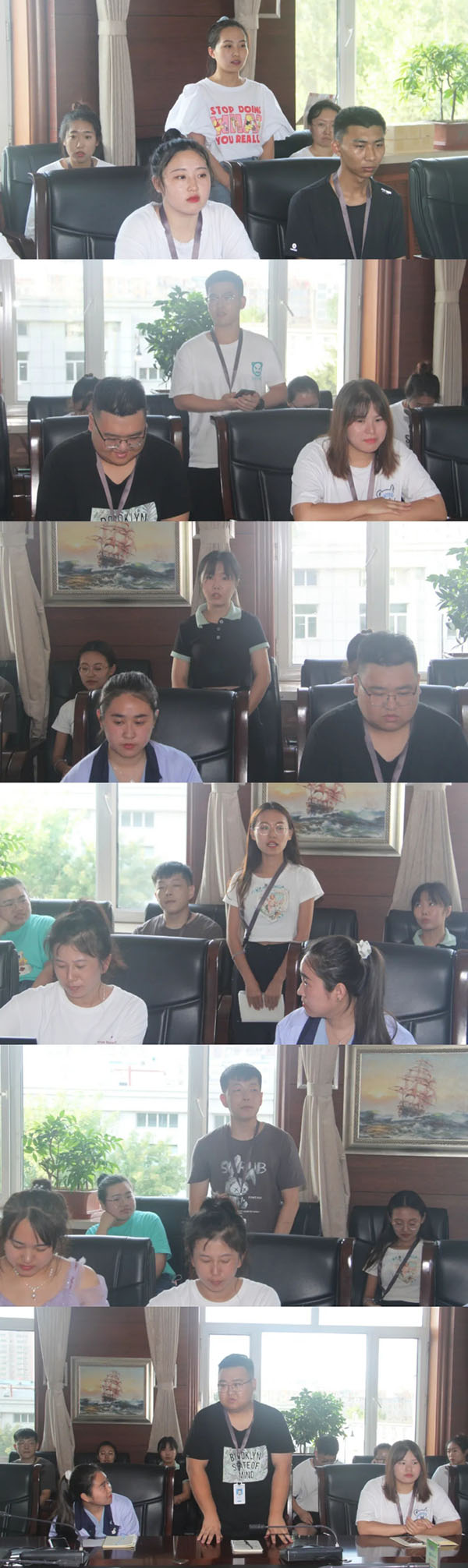 会议首先传达了方同华董事长和陈海总裁在大学生座谈会上的讲话文件,大学生们认真聆听、记录,领会精神。随后,上一届入职公司的大学生钟方卓、王笑颖,作为老学员代表进行了发言。她们畅谈了这一年来在公司的经历和体会,感受最深的就是公司的和谐、友爱、务实、奋进;她们鼓励新学员敞开心扉,摆正姿态,潜心钻研业务,努力提升自我。大学生们依次作了自我介绍,并将自己今后的职业发展方向和规划与公司领导进行了交流,各系统、部门、车间负责人也对大学生们提出了希望和要求。