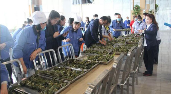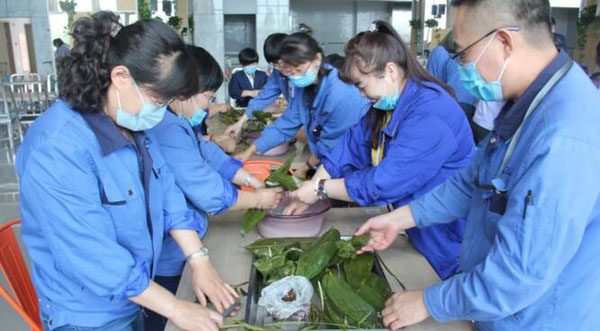 公司后勤工会组织举办迎端午包粽子活动