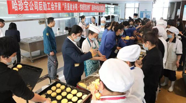 公司后勤工会组织举办迎中秋月饼制作活动